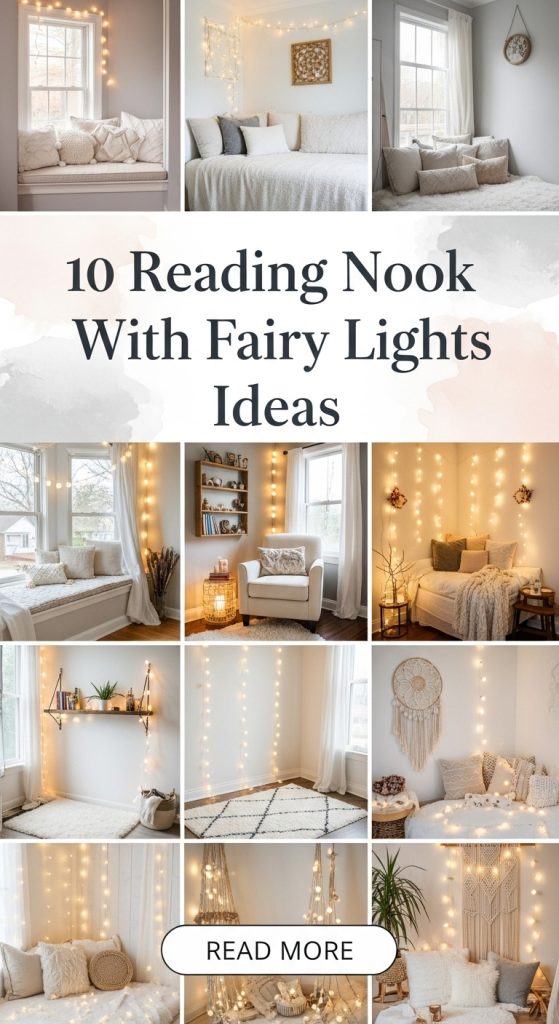 A layered fairy-light nook feels like a cocoon of warmth. It’s perfect for both day and night, and it transforms your reading experience into something beautifully atmospheric.