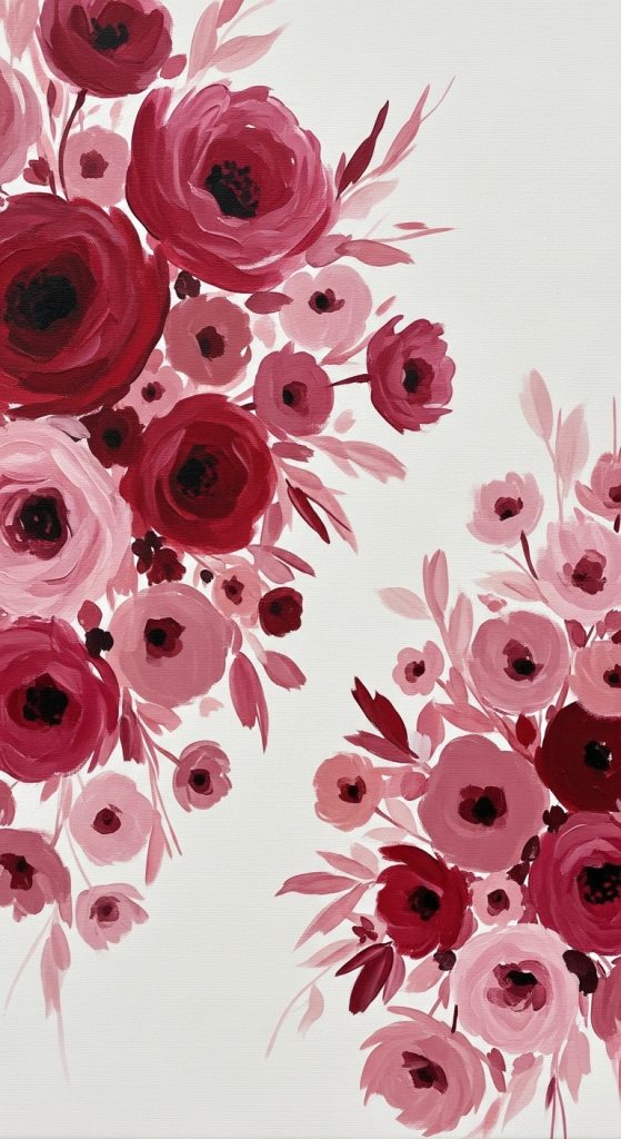 A floral silhouette painting focuses on creating the outline of flowers without detailing the internal structure. By using dark, solid colors for the flowers and leaving the background free of detail, you create an abstract yet striking image where the flowers stand out as bold, simple shapes.