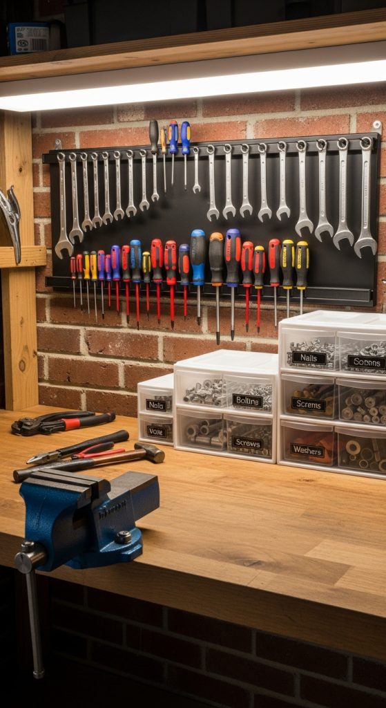 Magnetic strips provide a convenient solution for keeping metal tools like screwdrivers, wrenches, and drill bits easily accessible. Mount them above your workbench for quick access while working on projects.