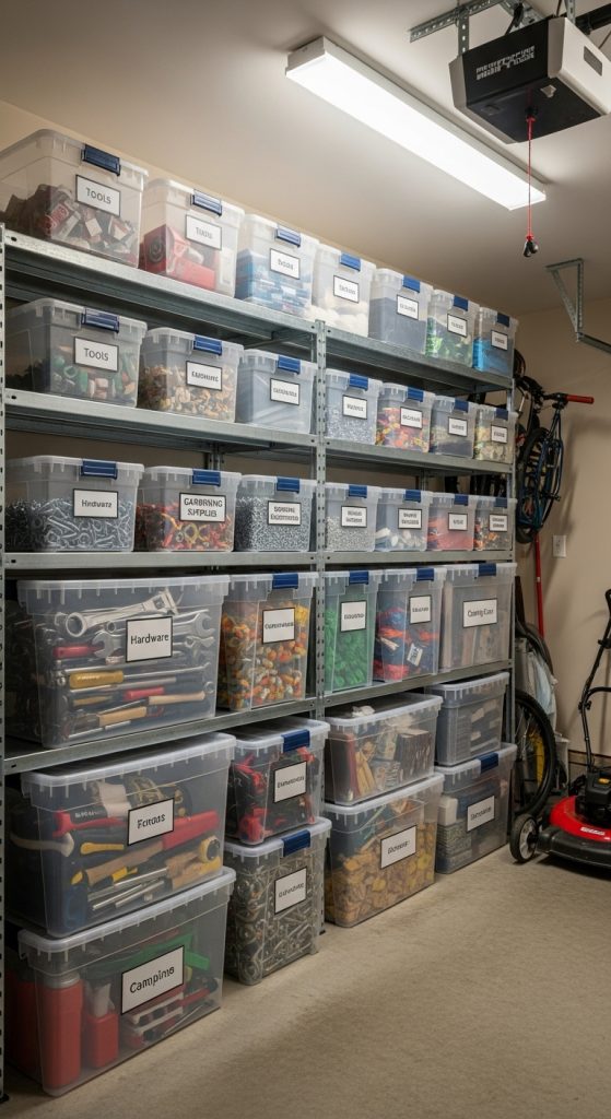 When it comes to organizing a wide variety of items, clear plastic bins are a simple yet effective solution. They protect contents from dust and moisture while keeping everything visible. Labeling bins further ensures that you’ll never waste time rummaging.