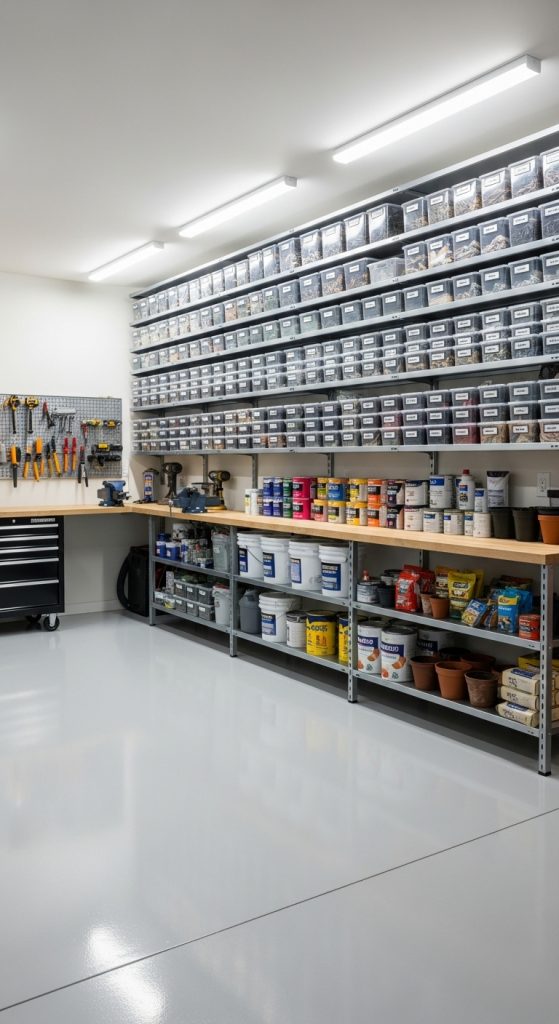 The beauty of wall-mounted shelving is its flexibility. Adjustable shelving units let you modify the height to fit bulky bins or smaller items. Consider grouping items by category—like tools on one shelf, cleaning products on another—to make retrieval easier. Adding clear storage bins keeps smaller supplies organized and dust-free.