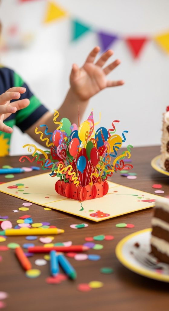 Design winter village scenes with moving sleds. Create interactive “pull tab” animations. Use metallic papers for anniversary cards. Incorporate pockets for gift cards or confetti bursts.