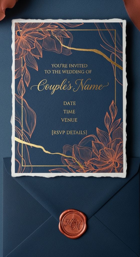 1. Navy Blue and Terracotta Wedding Invitations