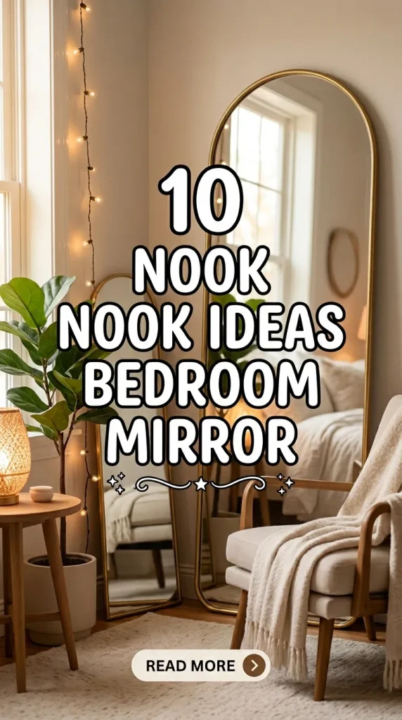 Mirrors in bedroom nooks are a clever design choice that enhances light, creates a sense of space, and adds aesthetic appeal. They can transform small corners into functional and stylish areas, perfect for reading, dressing, or relaxation. Whether paired with built-in seating, desks, vanity tables, or shelving, mirrors amplify the room’s ambiance and make the nook feel larger and brighter. From full-length and decorative mirrors to mirrored walls or panels, these ten bedroom nook ideas showcase ways to integrate mirrors thoughtfully while maximizing both style and practicality.