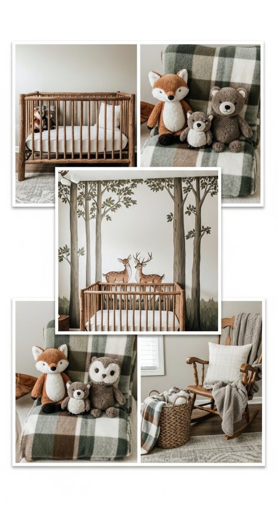 Bring the outdoors in with a woodland-inspired nursery. Use forest-themed wallpaper featuring trees, deer, or owls as a backdrop. A neutral palette of greens, browns, and creams creates a grounding effect.