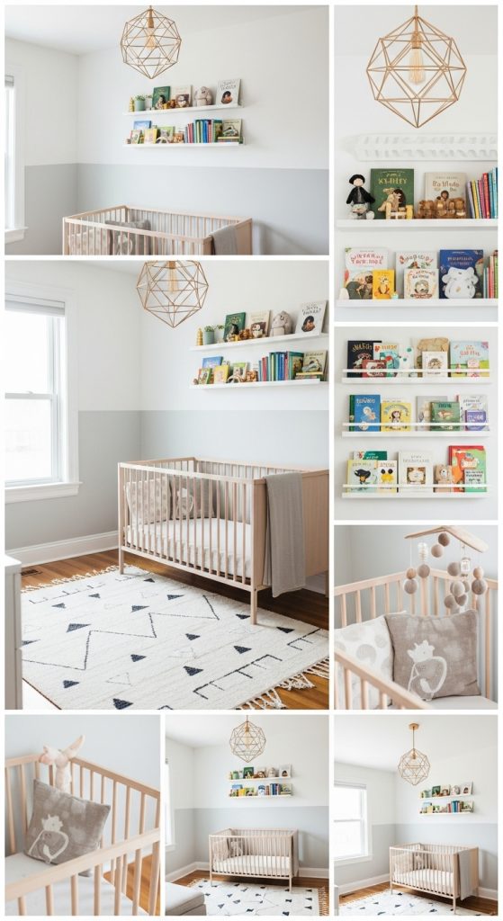 For parents who prefer clean lines and simplicity, a modern minimalist nursery offers a sleek and stylish option. Stick to a neutral base—like whites, grays, or soft beige—and add pops of color with blush or lavender accents. A Scandinavian-inspired crib with natural wood, paired with open shelving, keeps the design clutter-free and functional.