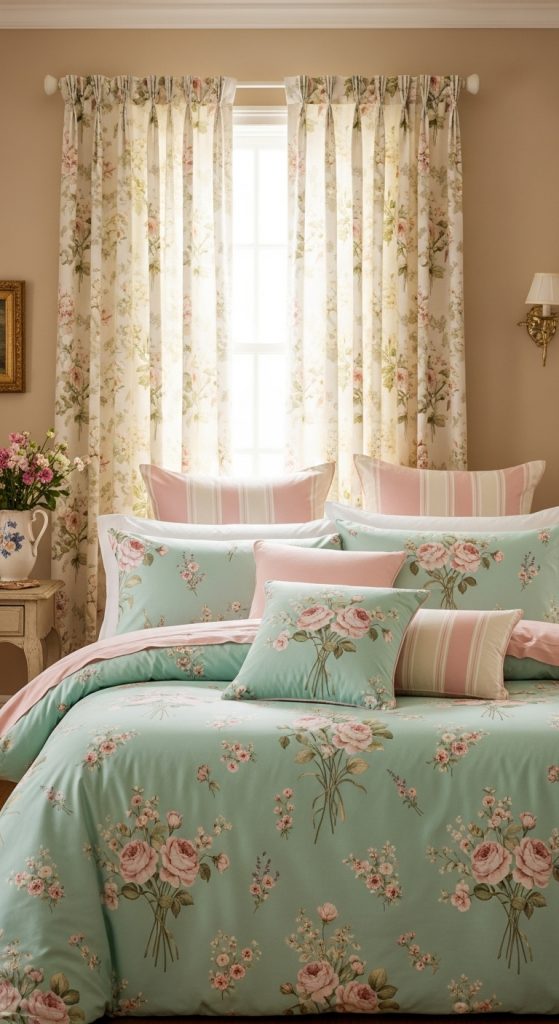 - Floral Bedding: Look for floral duvet covers or comforters in soft pastel hues like light pink or peach. Choose patterns with small, delicate flowers for a timeless look.