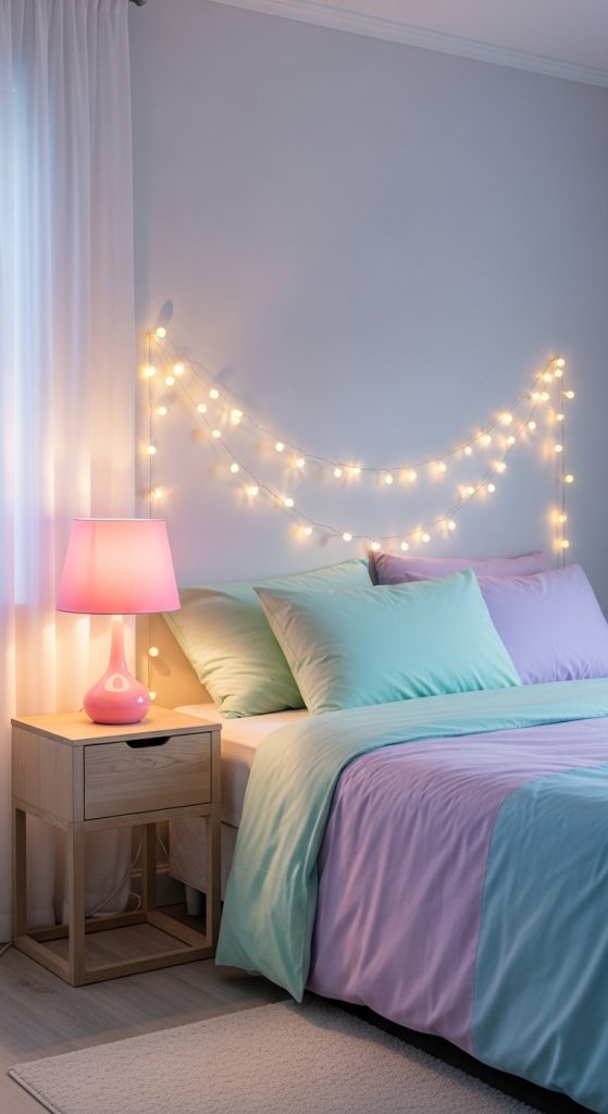 - Fairy Lights: Drape soft pastel fairy lights around your bed or along the walls to create a whimsical, cozy feel.