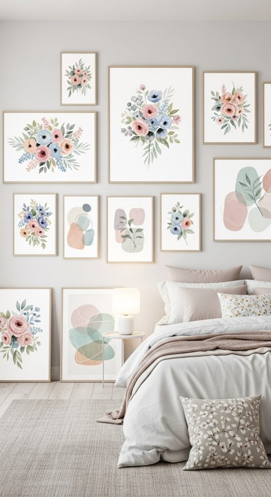 - Floral Wall Art: Decorate your walls with floral prints or paintings in soft, muted pastel colors. Consider botanical illustrations or watercolor flower paintings for a soft, dreamy effect.