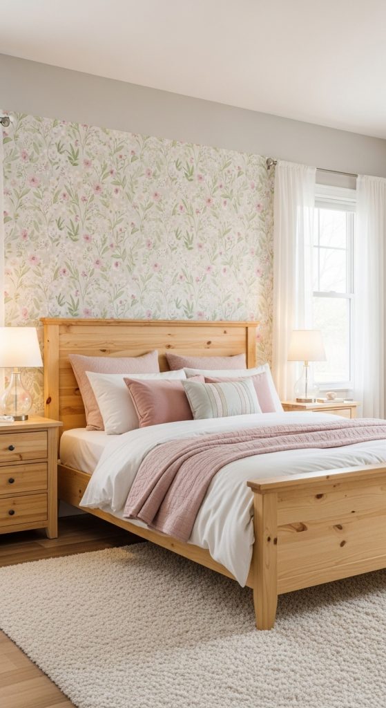 - Floral Wallpaper: Opt for floral or botanical wallpaper in pastel tones to create a romantic, garden-like feel.
