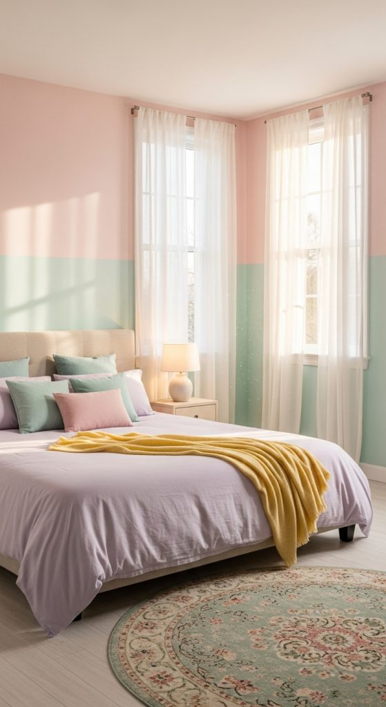 - Accent Wall: Consider an accent wall in a deeper pastel hue or a two-tone wall to add some depth and interest to the room without overwhelming it.