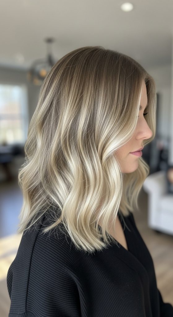 Ash blonde balayage is perfect for those who want a natural, sun-kissed look without committing to full-on platinum. This technique involves hand-painting subtle highlights onto a darker blonde base, creating a seamless gradient that mimics natural hair lightening. The cool, muted ash tones are characteristic of Scandinavian aesthetics, offering understated elegance. Balayage is low-maintenance, as the roots can grow out without appearing stark or harsh. Styling options include soft waves, straight sleek looks, or messy buns. This technique enhances natural dimension while keeping the hair looking soft, voluminous, and effortlessly chic.