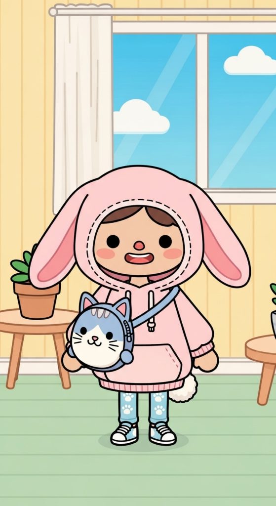 Kids love animals, and Toca Boca outfits often feature animal-themed clothing. Imagine a hoodie with bunny ears, leggings with paw prints, and a backpack shaped like a cat.