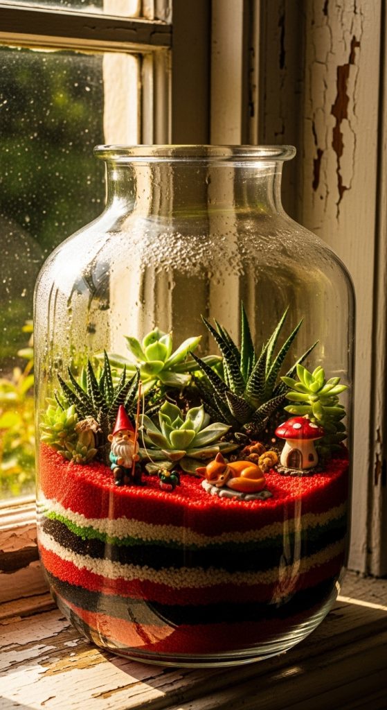Create miniature ecosystems in wide-mouthed bottles. Layer pebbles, activated charcoal, soil, and moss. Add small plants like ferns or air plants. Mist occasionally and seal with a cork for closed terrariums. These self-sustaining displays bring nature indoors, ideal for tabletops or shelf decor. Use colored sand for artistic stratification.