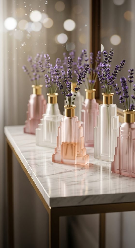 Repurpose decorative perfume bottles into delicate bud vases. Remove spray mechanisms and clean thoroughly. Fill with water and short-stemmed flowers like roses or daisies. Group varying heights for a chic centerpiece. Embellish with ribbon or metallic paint for a vintage look. These vases elevate floral displays while preserving sentimental fragrance containers.